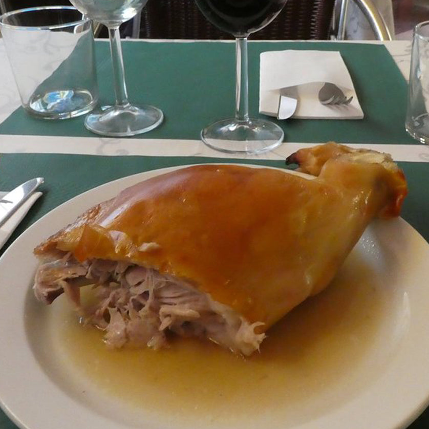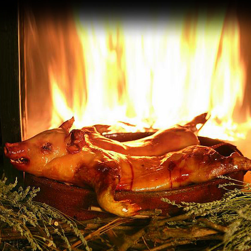 All of our suckling pigs are raised on a diet exclusively of milk. Cochinillo asado is surprisingly easy to prepare. Roasted in a special earthenware dish, the meat is so succulent that, in an effort to showcase its tenderness, chefs use the edge of a dinner plate instead of a knife, to cut and serve the pig.